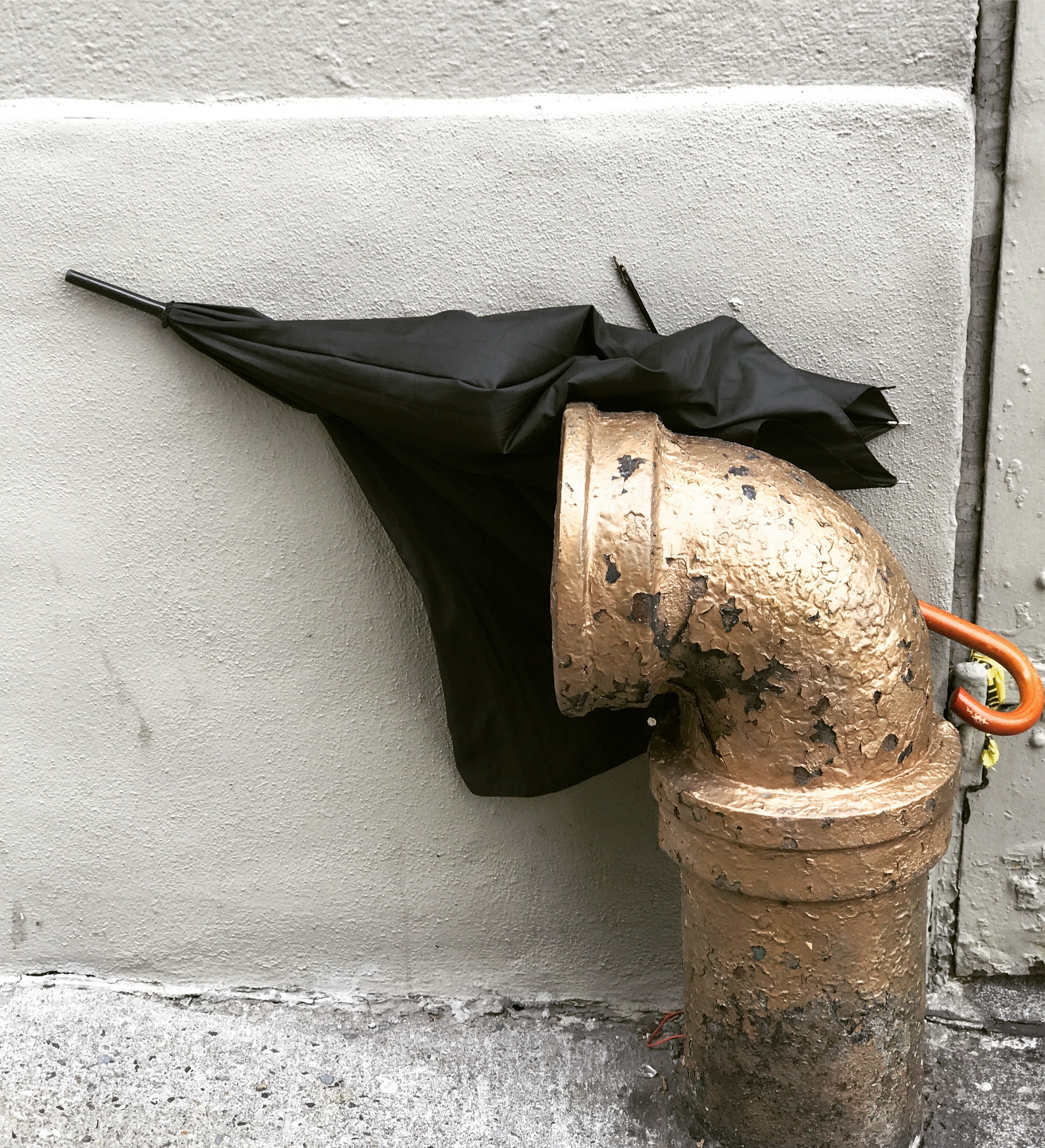 Where the Sun Don’t Shine #umbrellacarnage #umbrella #nyc #abandoned #standpipe #blackandgold #stuffed #stuck #wedged #wall #windyday 📸 by @esteban1280 thanks G!