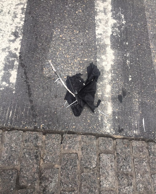 Crosswalk Casualty #umbrellacarnage #blackumbrella #nyc #discarded_butnot_forgotten #streetphotography #crosswalk #faded #umbrella photo and caption by @sarahshum1 -thanks!