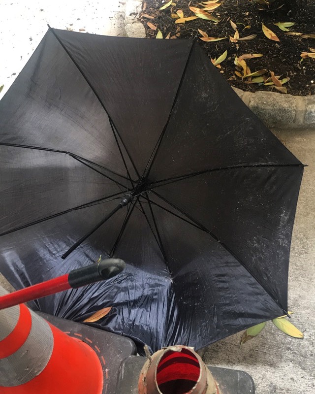 Cone of Death #umbrellacarnage #umbrella #blackumbrella #blackumbrellaphotography #discarded_butnot_forgotten #constructioncone #thebronx #nyc #patio #coneofdeath #lighting