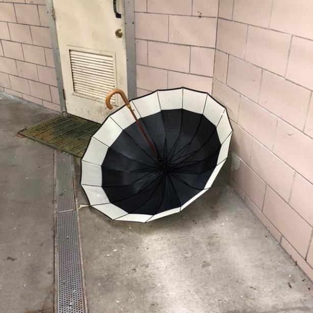 Ebony & Ivory, photo and caption by @14countess #umbrellacarnage #umbrella #stormyweather #rainyday #beacon #discarded_butnot_forgotten