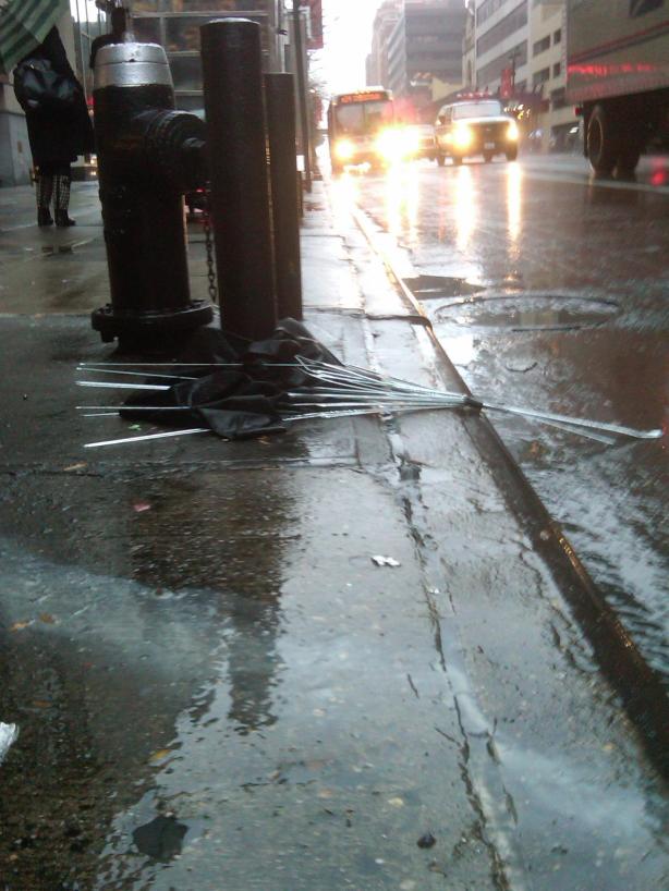Posted: December 1, 2010 in NYCTags: 34th street, alto manhattan, carnage, destruction, fire hydrant, midtown, new york city, rain, sad, storm, umbrella, waste, wires